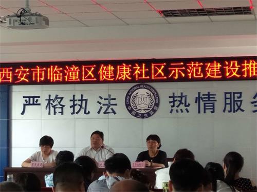 为贯彻落实省委省政府《“健康陕西2030”规划纲要》、省健康陕西建设工作委员会《关于深化健康细胞示范建设的指导意见》、省卫生和计划生育委员会、省民政厅《关于推进健康社区示范建设的实施意见》文件精神,扎实做好临潼区健康社区示范建设工作。5月23日下午,临潼区卫生健康局联合区民政局在区卫生计生综合监督所五楼会议室召开健康社区示范建设推进会。参加会议的有区卫生健康局相关科室、民政局基层政权科、各街办卫计办、各(中心)卫生院、社区卫生服务中心负责人共计60余人。
