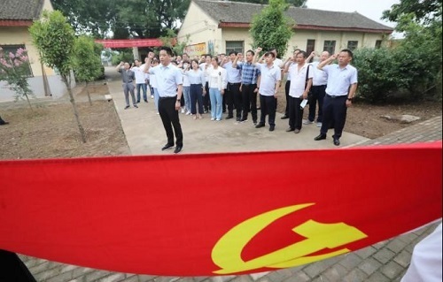 参观第一站设在三育学校,三育学校自创建以来已历经百余年沧桑,在八十余年后的今天,学校旧址依旧展示着战乱年代革命志士们忠直重义艰苦奋斗之真实情况。在三育学校,全体党员重温入党誓词,在历史的发生地感悟历史,在党旗下接受心灵的净化和洗礼,淬炼灵魂。