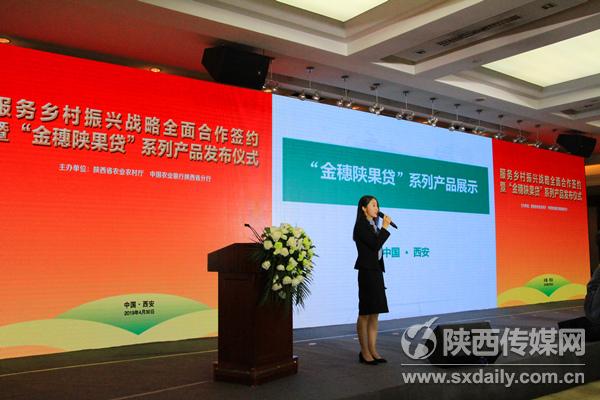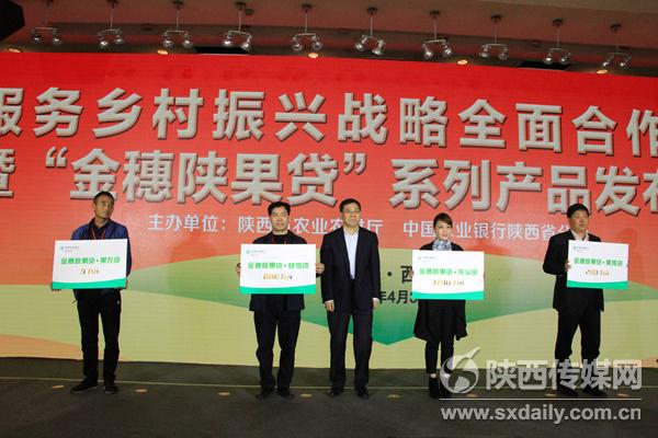 “陕果贷”产品发布会上,农行向果农、农业科技公司、海升果业、金果果业分别发放“果农贷”“快微贷”“龙头贷”“果库贷”,贷款总额达4709万元。