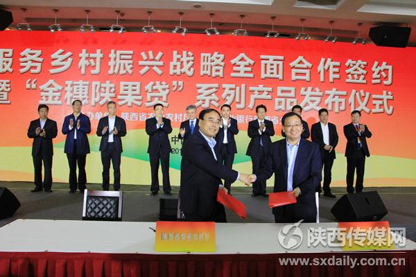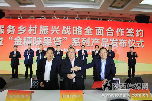(记者 孟雄薇)2019年4月30日,中国农业银行陕西省分行与陕西省农业农村厅在西安签署“服务乡村振兴战略全面合作协议”,双方还与陕西省农业信贷融资担保有限公司签署“金融服务职业农民发展战略合作框架协议”。现场发布了农行“金穗陕果贷”系列产品。