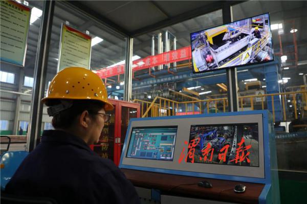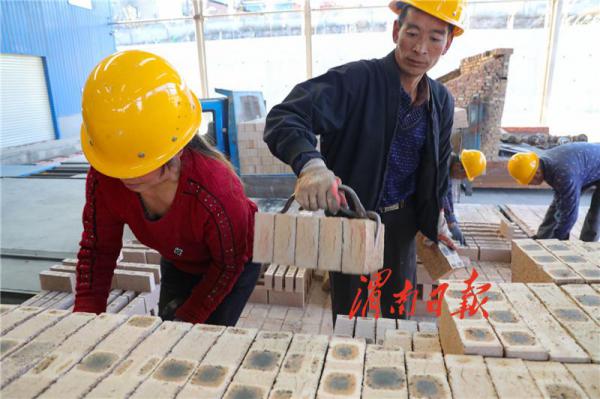 11月13日,陕西陕煤韩城矿业有限公司煤矸石烧结砖厂内,工人们正在煤矸石烧结砖生产线工作。