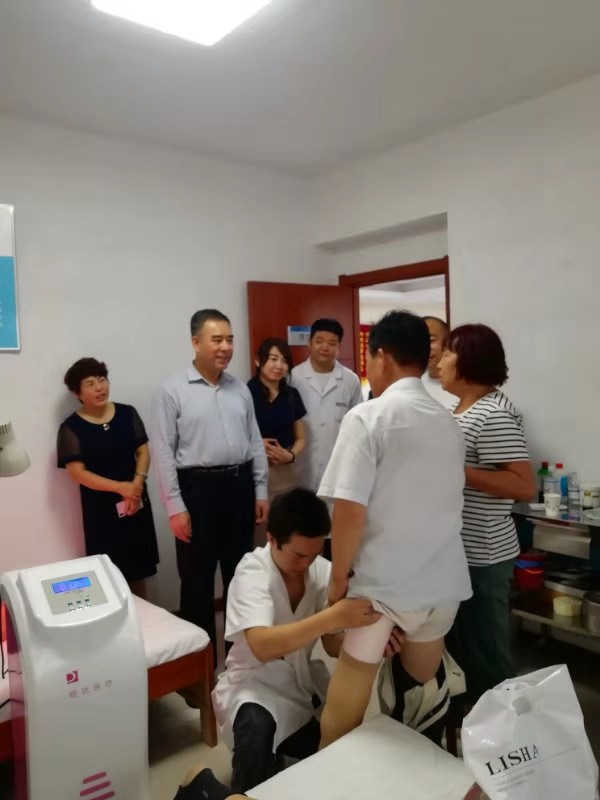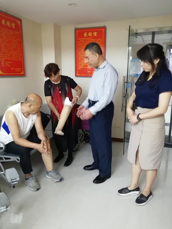 8月6日上午,未央区残联理事长张辉同志、副理事长翟敏伊同志前往西安海虹假肢矫形器有限公司,看望正在进行假肢装配的残疾人,现场查看强跃民、徐万辉、张改贤等残疾人的假肢装配、适应情况,随后,参观了西安海虹假肢矫形器有限公司各种假肢器具样品,听取专业人员细心讲解,就肢体残缺人士对假肢器具的不同需求和目前主要假肢产品使用情况进行调研。