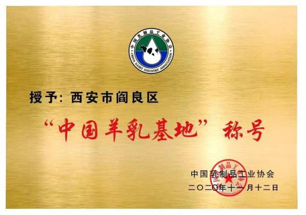 中国乳制品工业协会授予阎良区“中国羊乳基地”称号