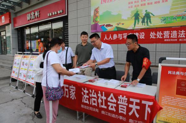 为总结巩固“七五”普法成果,推进实施“八五”普法计划,落实我市创文工作任务,营造平安雁塔、法治雁塔氛围,结合市司法局工作部署,2020年9月15日,雁塔区司法局在曲江法治广场开展“平安建设进万家法治社会普天下”和“创建文明城市办好全运盛会”为主题的普法宣传活动。